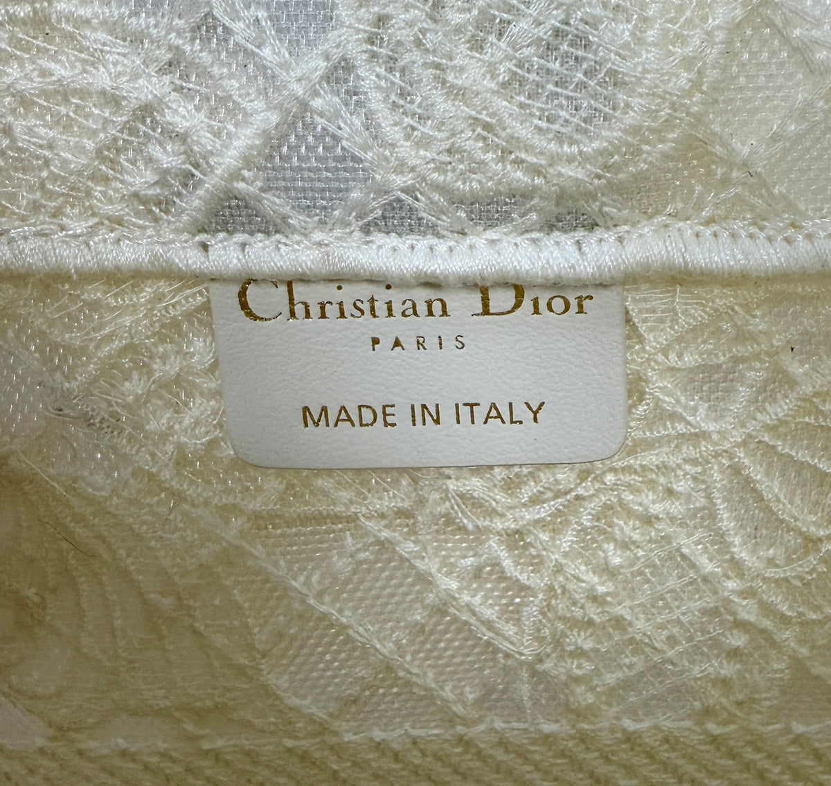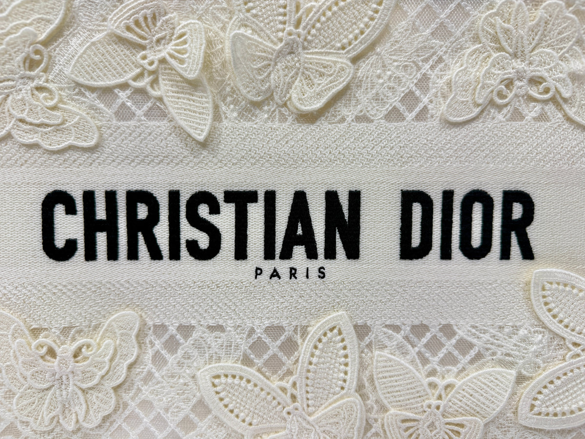Dior Medium Book Tote 3D Macrame D-Lace Butterfly White