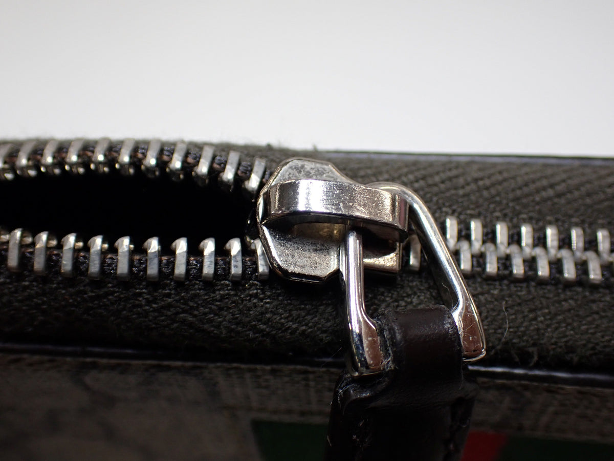 The Gucci Web Zippy Wallet in GG Supreme canvas combines iconic design with practical functionality. Featuring the signature red and green Web stripe detailing and monogrammed GG Supreme pattern, this wallet delivers timeless luxury. The full zip closure secures multiple card slots and compartments, making it ideal for organizing essentials.