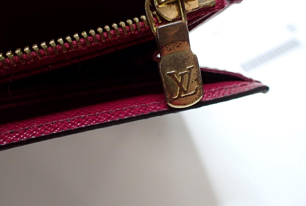The Louis Vuitton Sarah Wallet in Monogram Fuchsia combines timeless luxury with vibrant style. This iconic wallet features the signature LV monogram canvas with a striking fuchsia trim that makes a bold fashion statement. With multiple card slots, bill compartments, and a coin pocket, it offers practical organization for your everyday essentials. The durable construction and classic design ensure this piece remains a cherished accessory for years to come. Perfect for those who appreciate authentic luxury and want to add a pop of color to their collection.